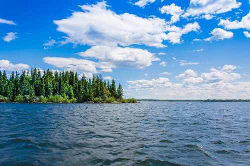 Think of it—just the two of you. The only habitation on the lake. No civilization for hundreds of miles! No roads. No phones. Nothing but a 45-mile-long stretch of ice-cold drinking water. 150 islands. More shoreline than Lake Michigan. Fir and aspen trees as far as you can see. Beaver, deer, and bear. The bald eagle. The blue heron. The loon. Loads of pike and walleye. A comfortable boat and the best fishing guide in Canada. A top-pro staff that caters to the old fart’s every whim.