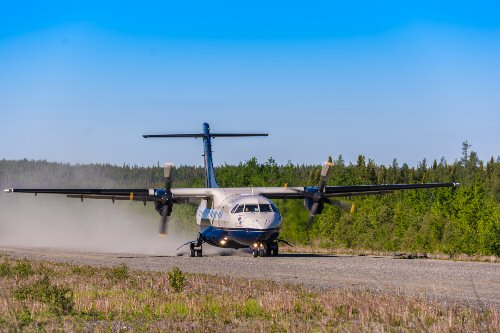 Your destination is a 4,000 ft. landing strip carved out of the forest and paved with gravel quarried on site. The harvested trees make up the raw material for building such a facility.