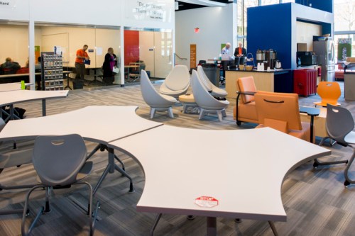 “One of the biggest places we found is around food. So we have a built-in cafe around the corner because you want to meet somebody for a cup of coffee. You just want to have a casual conversation. You want to have a back-of-the-napkin sketch, that can happen there or it can happen in our idea bar.