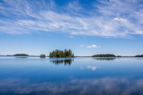 My favorite location is Manitoba at the 55th parallel—as far north as Alaska’s Aleutian Islands and the Bering Sea—as far north as Omsk. North of that grow stunted trees in permafrost, but here tall Pine and Aspen surround the lakes. Uncounted and untouched waters flow through this region—a massive system of rivers and lakes, draining into Hudson Bay. Here it is not uncommon for the ice to measure four feet thick as late as May. I come in June.