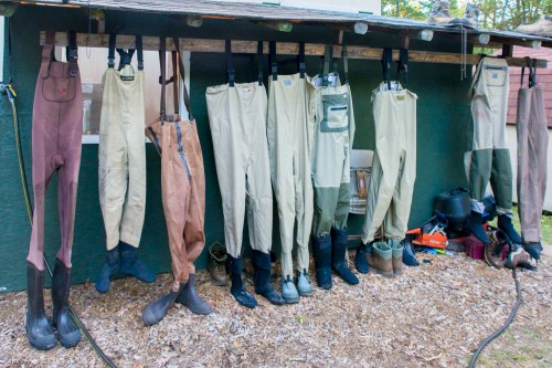 Sunday, after a big breakfast, we honor two fishermen taken from us this year, and Bueter hangs their waders in memorial.