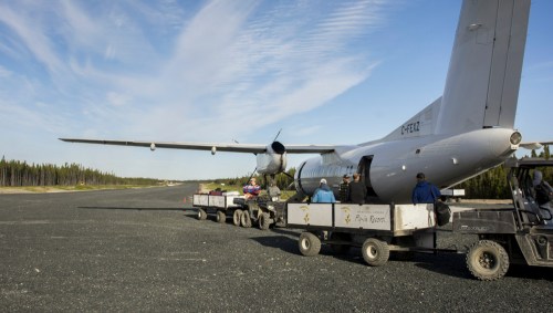 Our host is right. Don’t wrestle with pigs. You both get dirty and the pig likes it. But for the record, we traveled by luxurious turboprop, tricked out with air conditioning, reclining leather seats, and a pretty stewardess who earnestly plied us with food and drink. In an hour and a half, it whisked us away from Winnipeg, 500 miles north to a private gravel strip carved out of the forest. But Lonagan has been babbling all this time.